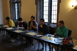 After 3.5 hours of intense play, Panayoti managed to defeat Leslie Tang, the last player standing, thereby ending the event with a 15-0 score. However, the event was not over yet! Six UofT students, proved how much they loved chess by staying at Hart House for another 5 hours for post-mortem analysis of their games with Panayoti! A fullest Sunday evening indeed!