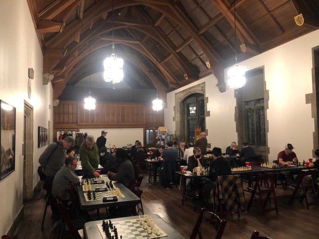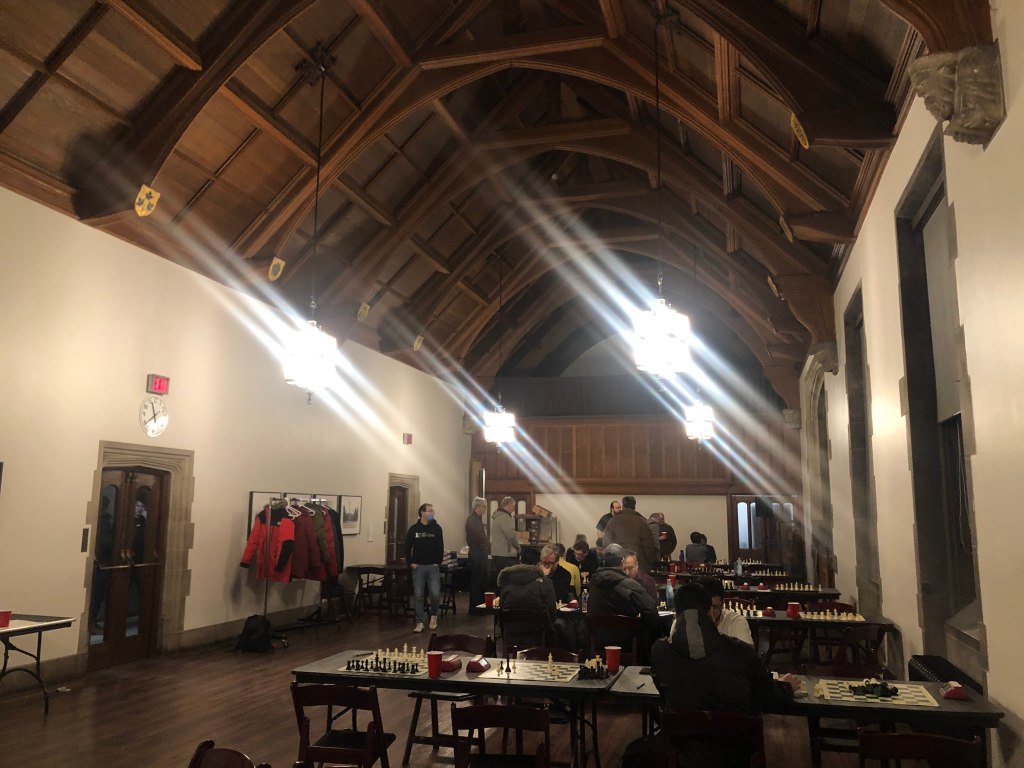 Hart House Chess Club had 3 teams represented,: Students, Alumni, and 20th Century Juniors. The Students team consisted of all U of T students and a couple high-school substitutes, the Alumni team consisted of majority recently graduated U of T students in the 90s, 2000s, and 2010s, and the 20th Century Juniors Team consisted of those who played for the Club in the 70s and 80s. We were very happy to see such amazing variety and representation from all of our alumni and students. It was the first time that Hart House held this version of the Toronto Team Championships, and it was fitting that one of our teams came out on top!