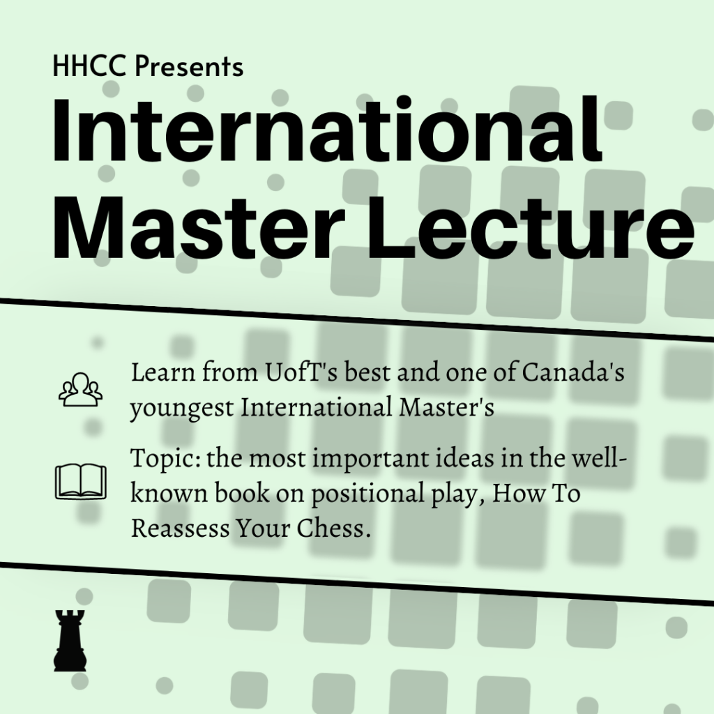 This event was open to all members of the Hart House Chess Club. The lecture will be an hour, including a Q and A session.