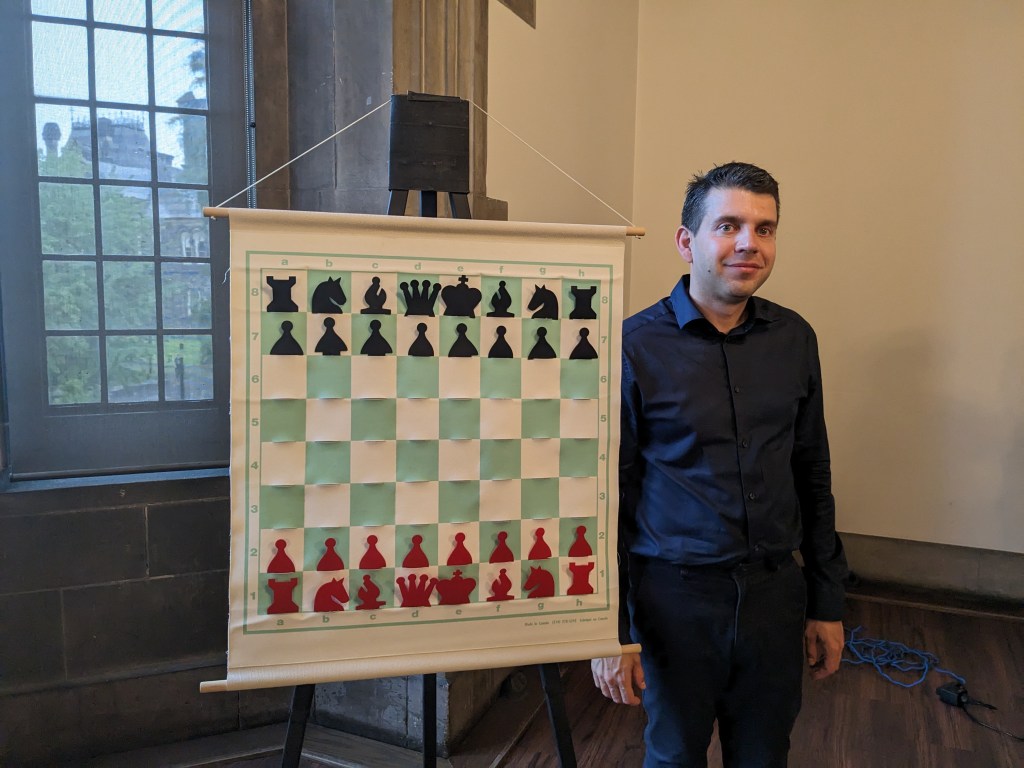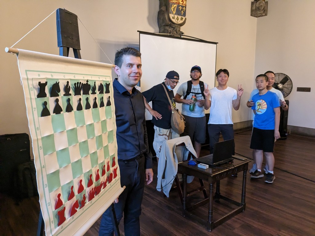 On Friday, June 2nd, 2023, Grandmaster Gergely Szabo visited the Hart House Chess Club to conduct a lecture on Calculation. The event consisted of an hour long lecture hosted in the Debates Room of Hart House. Extra chairs were brought in as the number of participants reached over 40! The lecture was quite captivating as many questions were asked. Participants thought that the lecture was delivered very professionally and everyone of all skill levels learned something from it.
