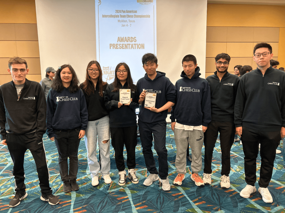 This year, from January 3rd – 8th, 2024, I set off with seven other UofT students on a memorable journey consisting of multiple flights, hurried transfers, and dreadful 6-hour bus rides to McAllen, Texas, USA, for the annual Pan American Intercollegiate Chess Championship, the pinnacle of international collegiate chess. The tournament fields some of the strongest collegiate chess players, such as GM Grigoriy Oparin, GM Awonder Liang, and GM Benjamin Glendura, all rated above 2700 USCF and the top three seeds in this year’s Pan Ams. Dubbed the “World Series of College Chess”, Hart House Chess Club had fundraised and fielded teams to the Pan Ams tournament every year between 1965, the year the club first won it all, and 2019.
